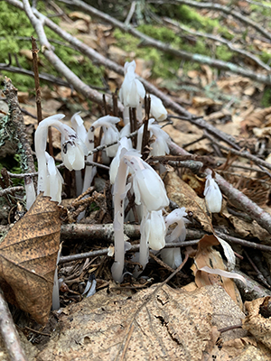 While workshops are great for learning, most of my species identification learning came from working in the field, taking biological inventories of species. We used guides or the prior knowledge of colleagues to identify species. While working on the islands of Lake Superior, I learned to identify plants I’d never seen before, like Rock Harlequin (a pink and yellow flower), Canada Mint (a purple flower with minty leaves), and Ghost Pipe. Ghost Pipe is especially interesting because it’s a type of wildflower that lacks chlorophyll (the stuff that makes plants green). As a result, it can’t use sunlight to make energy like other plants. Instead, it gets nutrients from the roots of nearby trees. Ghost Pipe looks a lot like a fungus, but it’s actually a flower, and I wouldn’t have learned about it if I hadn’t been out in the field.