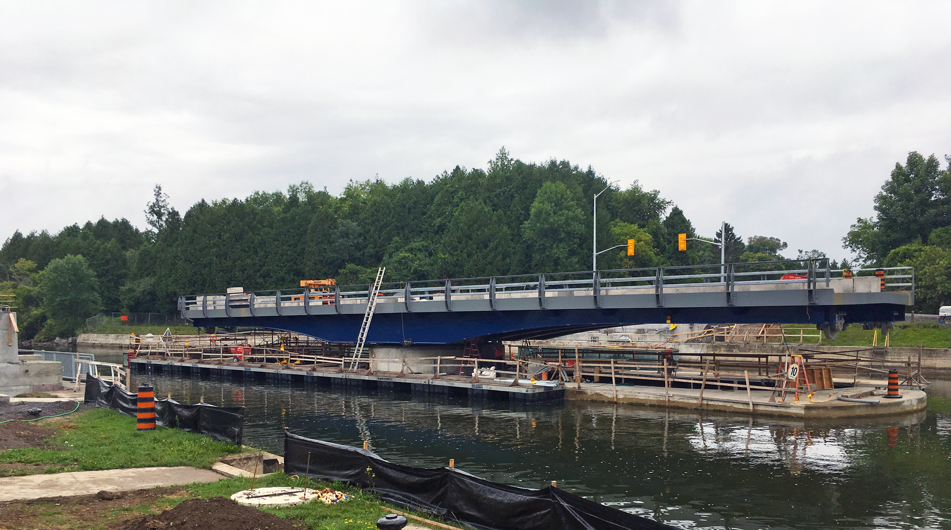The Brighton Road Swing Bridge spans the Murray Canal on County Road 64, connecting Prince Edward County and the Municipality of Quinte West. The bridge is being replaced with a new two lane swing bridge that will also have a pedestrian sidewalk, a full highway load rating eliminating the current restrictions for emergency and service vehicles, and upgraded mechanical and electrical features.