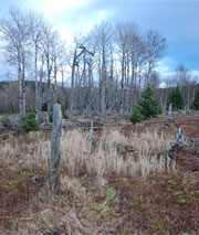 Balsam fir trees browsed to the trunk