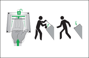 - Place your hand inside the handle and push it to the very back to release the latch.
