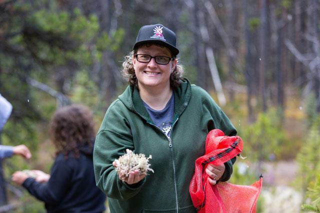 Many Indigenous Peoples have significant ongoing and historical connections to caribou. Indigenous partners are contributing to the success of Jasper’s conservation breeding program and caribou recovery more broadly by sharing their knowledge and culture, holding ceremonies, participating in fieldwork and collecting lichen to bring to the caribou in the breeding centre.