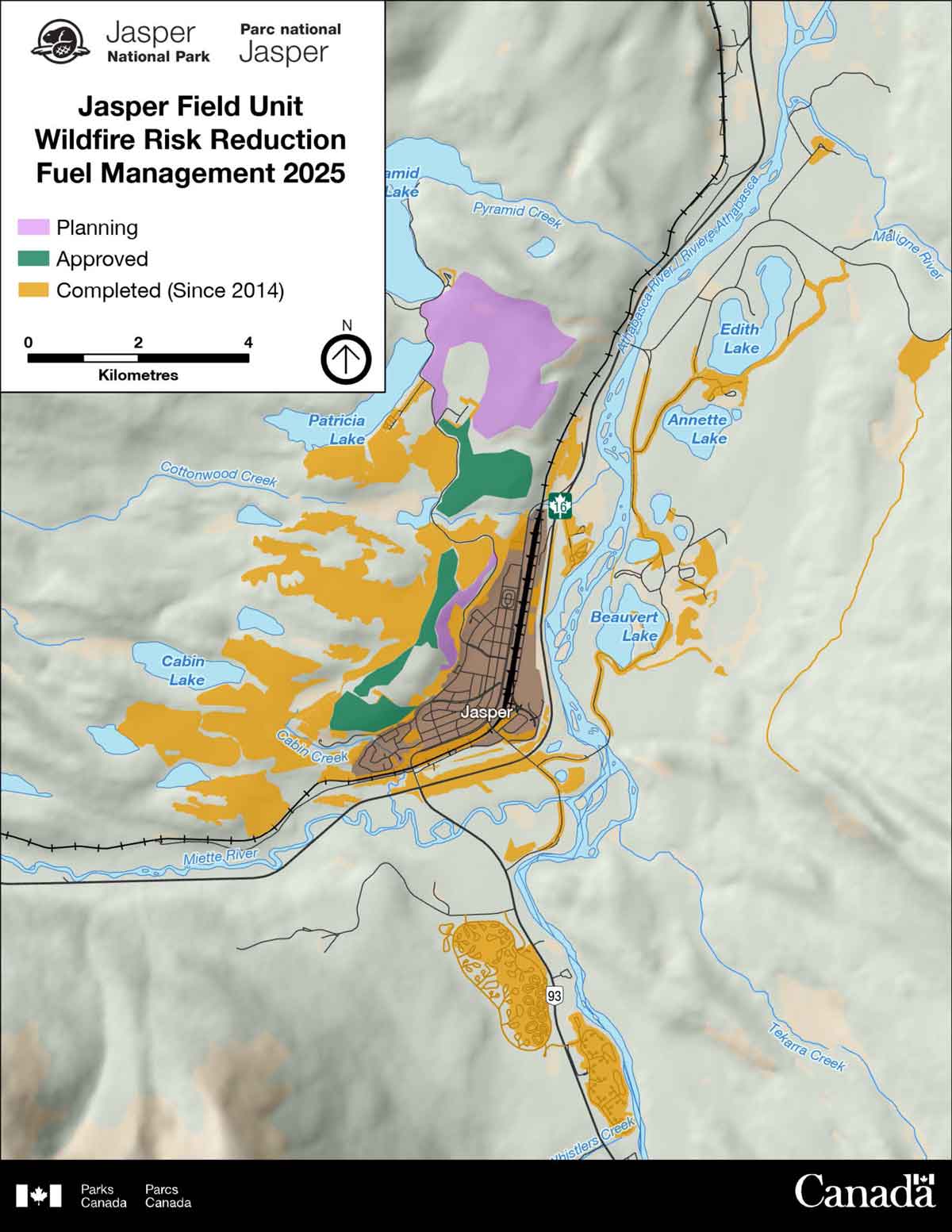 Overview of approved wildfire risk reduction projects in Jasper National Park