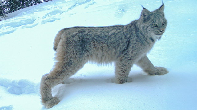 The lynx is smaller than a cougar, but still a fantastic hunter. They are specialists of boreal and sub-alpine mountain habitats and mature forests.