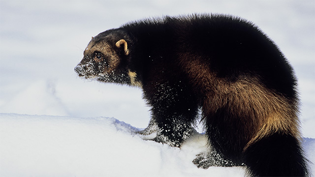 Found throughout high elevation forests and well into the harsh alpine, the habitat of the wolverine covers a wide territory.