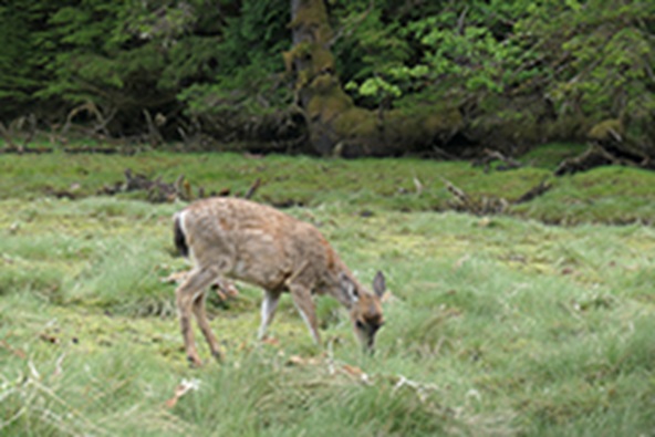 Right: A Sitka black-tailed deer browses some shrubs. ©C.Gill/Coastal Conservation