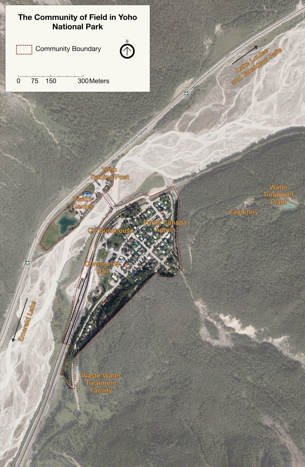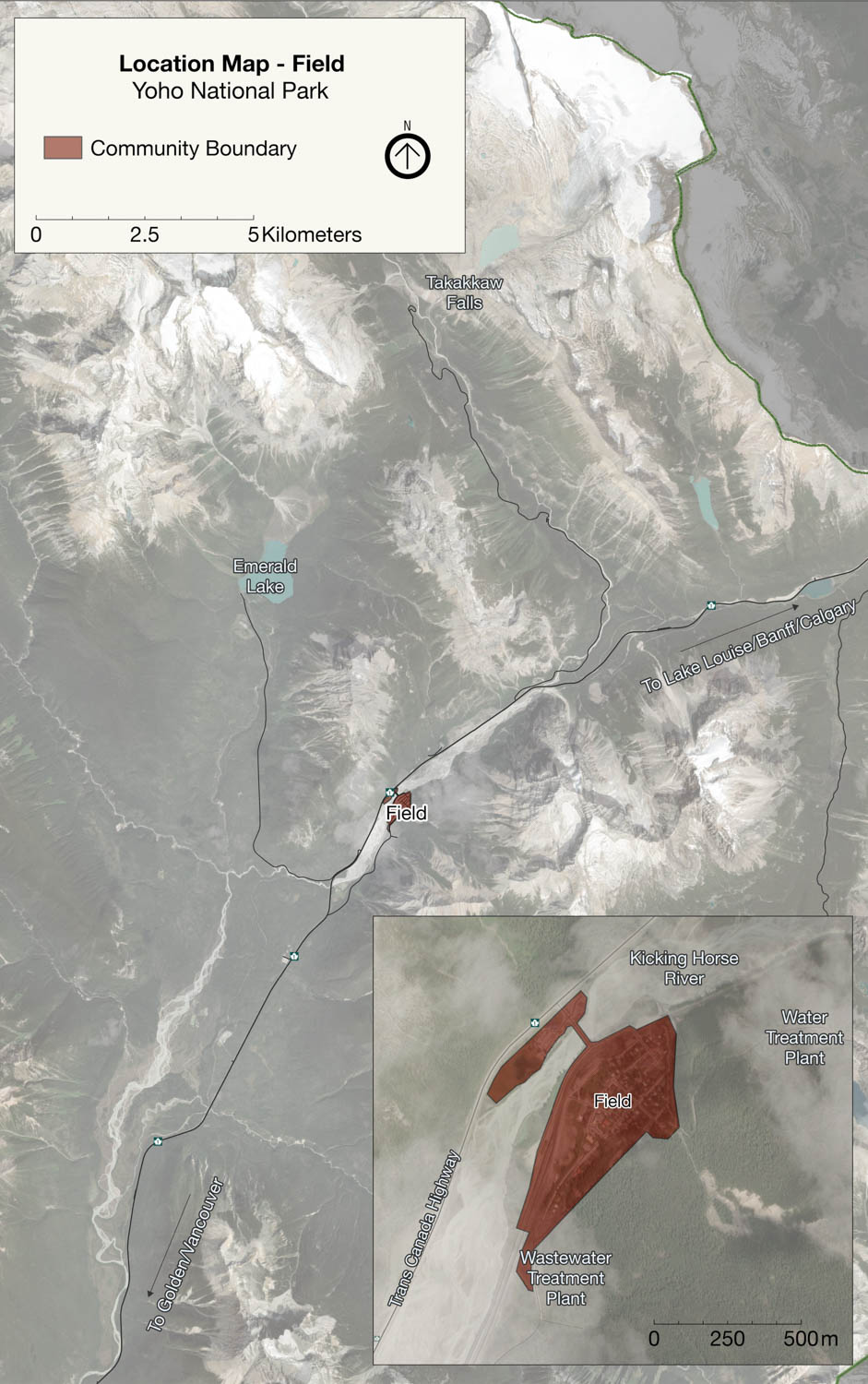 The boundary for the community of Field is contained within the legislated community boundary as shown on survey Plan 88096 CLSR as referenced in Schedule 4 of the Canada National Parks Act (CNPA).