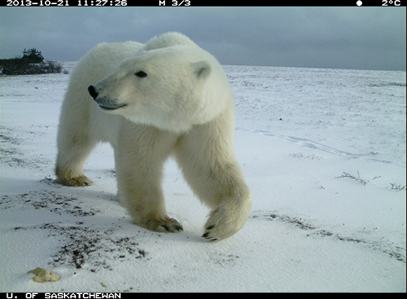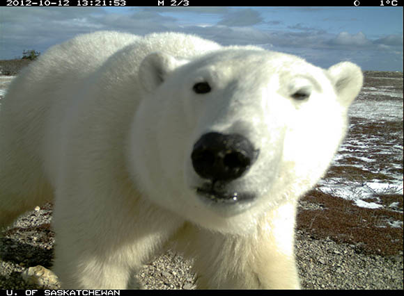 Trail cameras are a non-invasive way to watch polar bears in their natural habitat. The photos can help researchers understand polar bear behaviour and how they are adapting to a changing environment. With this insight, Parks Canada can address park management to ensure the protection of polar bears and their home.