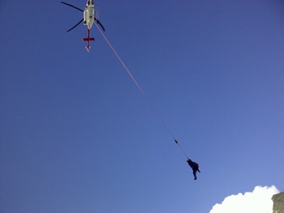 Although it was only an upper body injury and the patient could walk a short distance in simple terrain, it would have been hazardous to both the patient, and the rest of his party to descend the rough terrain to the road. Some of the most serious incidents in the mountains occur as a result of problems compounding to a point that things are out of control when early correction may have avoided further mishap. Remaining available for further telephone contact allowed rescuers to stay up to the minute on the patient’s condition and inform the party about relevant hazards seen at the rescue site from the air. The use of high visibility flagging tape assisted the rescue team and pilot to see the party and gave the pilot some information on local winds.