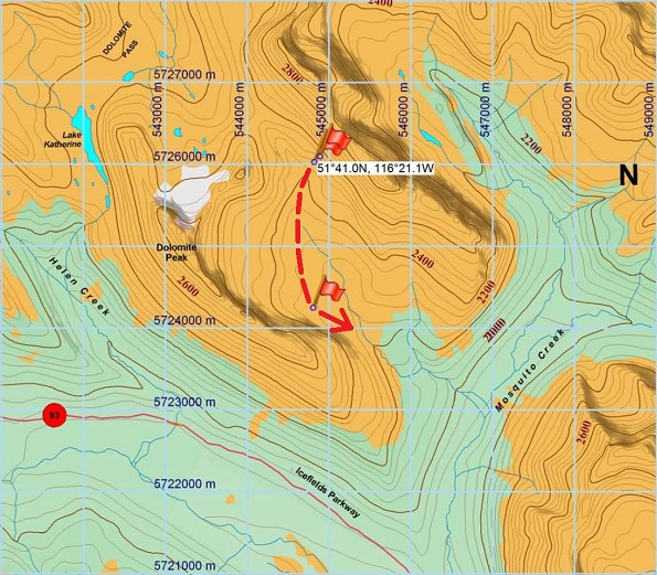 On April 4th, 2015, a group of backcountry skiers set out to ski the Dolomite Circuit in Banff National Park. They reached Watermelon Pass in poor visibility conditions by mid-afternoon and began their ski descent to Mosquito Creek. Shortly after beginning their descent, one of the skiers fell and broke his leg. The group was well prepared and after assessing the injury and splinting the injured leg, they triggered the “Help” button on their Personal Locator Beacon (PLB) device to call for a rescue. The skiers also assembled an emergency toboggan using a nylon tarp and other materials that they carried for this purpose. After packaging the patient to help keep him warm, they began moving him down the valley in the improvised toboggan. A second group of skiers in the area arrived and offered assistance to the first group. One of these skiers continued down the valley to make contact with the rescue team, while the others stayed to help move the patient.