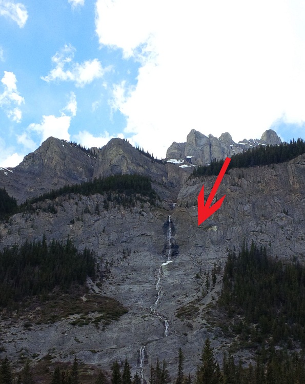 Scrambler stuck on a cliff, Cascade Waterfall, Banff National Park, April 26th 2015