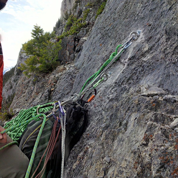 Two bolt anchor at ledge that the first rescuer initially slung into.