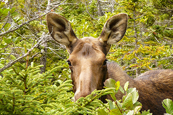 Moose – Moose were introduced to Newfoundland over a century ago, and with no predators their numbers grew rapidly in the park to a peak of 7800 in 1995. Excessive moose munching was keeping forests from re-growing, as a moose can eat 18 kg of trees and shrubs per day! Today the park manages moose at a sustainable level and forests are starting to recover, with benefits to many other species. Visit a ‘moose exclosure’ on the Bakers Brook Trail, a fenced area that shows the impacts of moose on forests by preventing them from eating the vegetation inside.