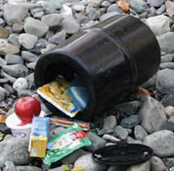 Pack all garbage back out of wilderness areas. Do not bury garbage as bears can easily locate and dig it out! If food scraps are burnt, pack out all unburned portions. While in camp, store garbage in a bear-resistant container (see Bear-Resistant Food Storage below).