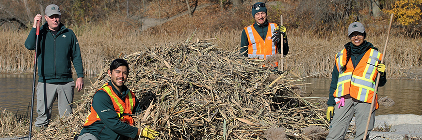 A crew from the Invasive Phragmites Control Centre along with Parks Canada staff and Indigenous partners has removed dense stands of European Common Reed (Phragmites australis australis) from the marsh wetlands near Rouge Beach. The tall perennial grass, native to Eurasia and now found throughout much of Ontario, grows aggressively, crowding out native vegetation and leaving less open water and food for wildlife. In addition to mitigating habitat loss, removing the invasive plants helps to stop their spread as a result of other initiatives being planned as part of Parks Canada’s Rouge Beach Improvement Project.