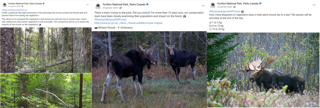Although it is difficult to determine the number of people who specifically consulted the section on moose, this tool nonetheless illustrates the efforts made by Forillon National Park to multiply the means of communication at various times in 2019-2020 with a view to reaching as many people as possible.