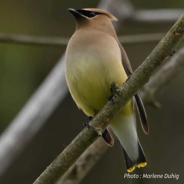 Did you know? Cedar waxwings often form large flocks and like to feed on fruits such as dogwood, serviceberry, cedar and juniper.