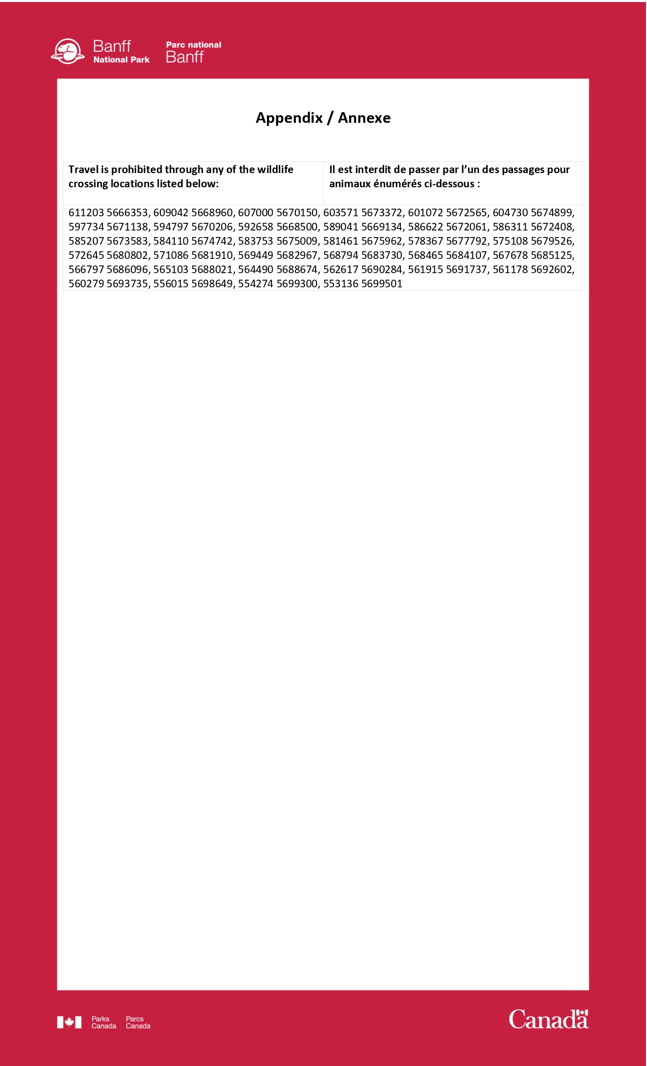 AREA CLOSURE - Wildlife crossing structures